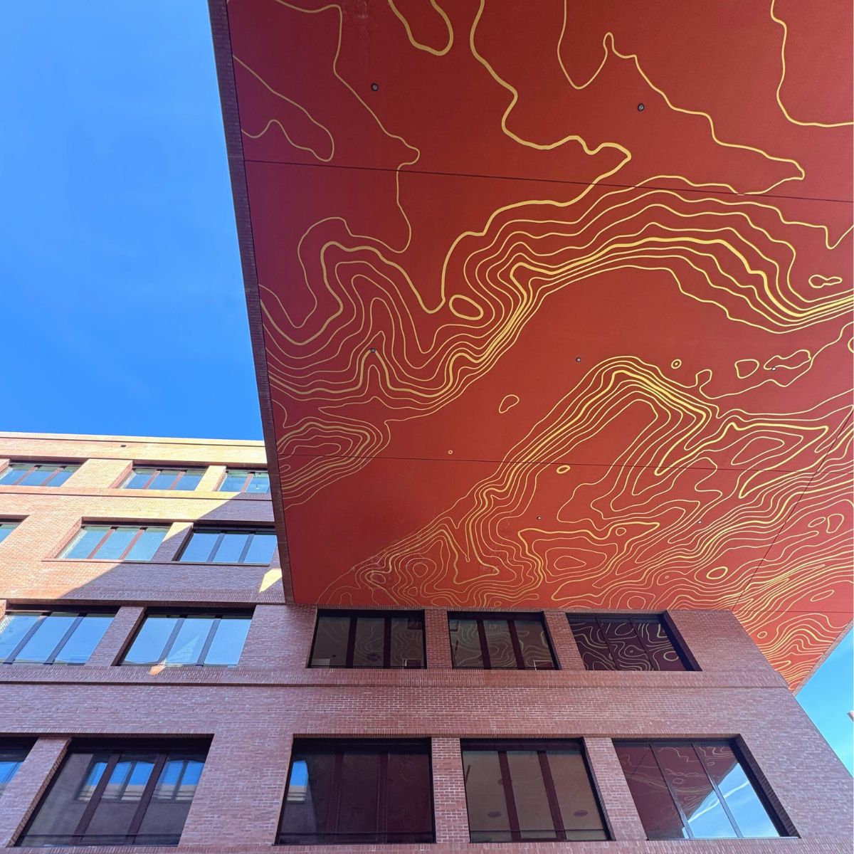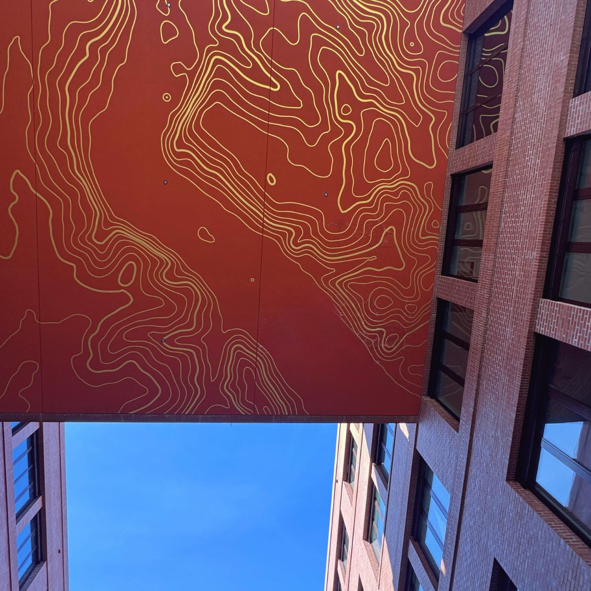 Ergänzend gestaltet Maren Profke fünf prägnante Wandflächen. Ihre Arbeiten greifen die vertikale Struktur des Hauses auf und schaffen inhaltliche wie räumliche Bezüge zwischen den Stockwerken und Studiengängen. Architektur und Kunst treten so in einen Dialog, der das Gebäude als zusammenhängenden Lern- und Lebensort erfahrbar macht.