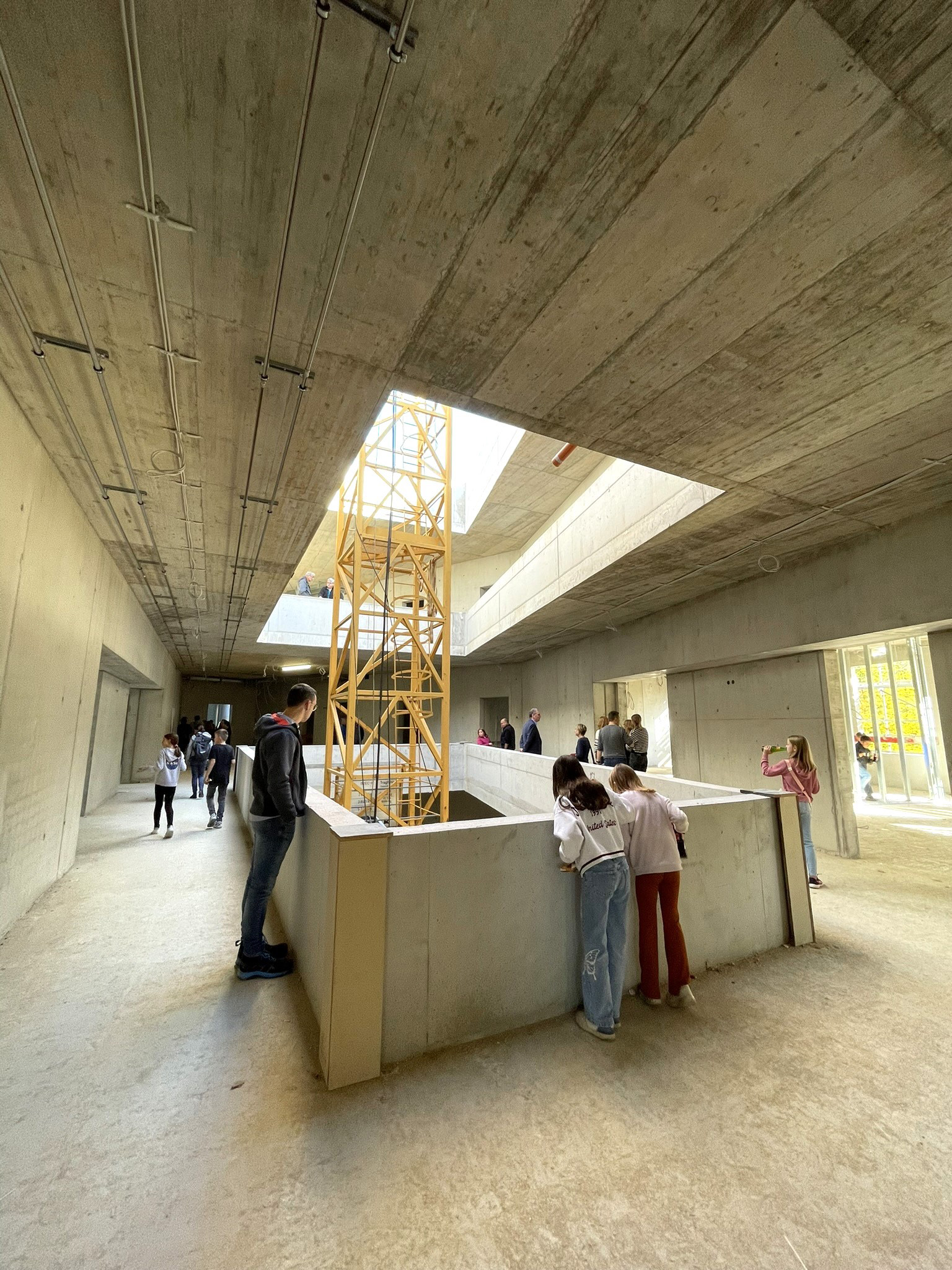Am 25.10.2024 war das Richtfest für unseren Neu- und Erweiterungsbau des Schulcampus der Friedrich-Schelling-Gemeinschaftsschule im baden-württembergischen Besigheim. 2020 hatten wir für unseren Wettbewerbsentwurf dazu den 1. Preis bekommen. Richtfest bedeutet immer auch Halbzeit der Bauausführung und wir freuen uns auf die Inbetriebnahme. Dann kehrt Leben in den Pausenhof, der sich von unten aus zu einem hohen Atrium entwickelt, in die Mensa, den Bewegungsraum, die Fachklassen und die Zimmer für das Personal. Ein bisschen Leben in unseren Räumen gab es schon beim Richtfest