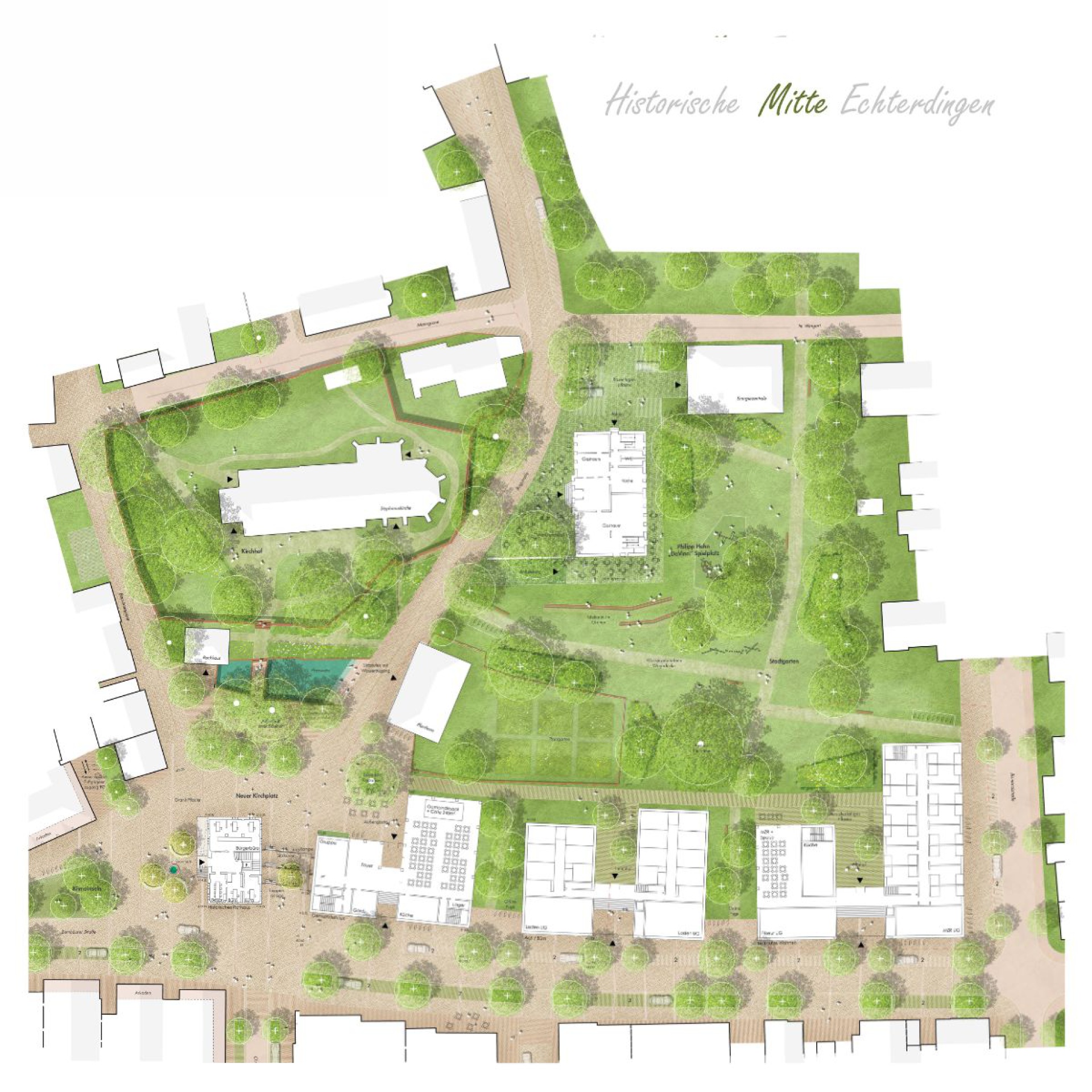 Gegenstand des Wettbewerbs war die ganzheitliche Weiterentwicklung der Historischen Mitte Echterdingen mit dem Ziel, den Ortskern gestalterisch, funktional und klimatisch zu stärken. Zentrale Aufgaben waren die Neugestaltung zentraler Freiräume (Realisierungsteil) sowie ein zukunftsorientiertes Konzept für das technische Rathaus und angrenzende Bereiche (Konzept- und Ideenteil).