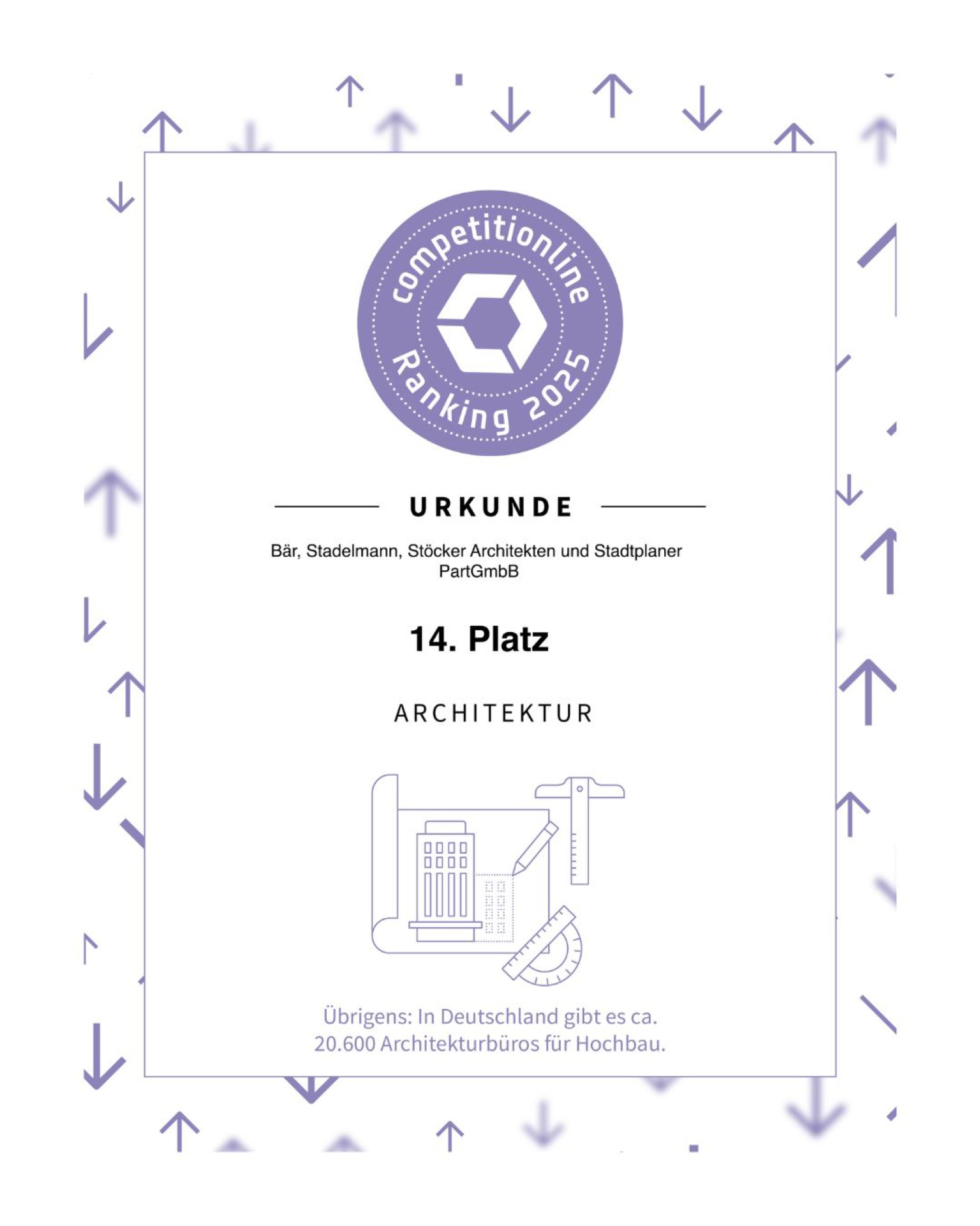Mit Platz 14 positioniert sich BSS Architekten auch 2025 unter den führenden Wettbewerbsbüros Deutschlands.