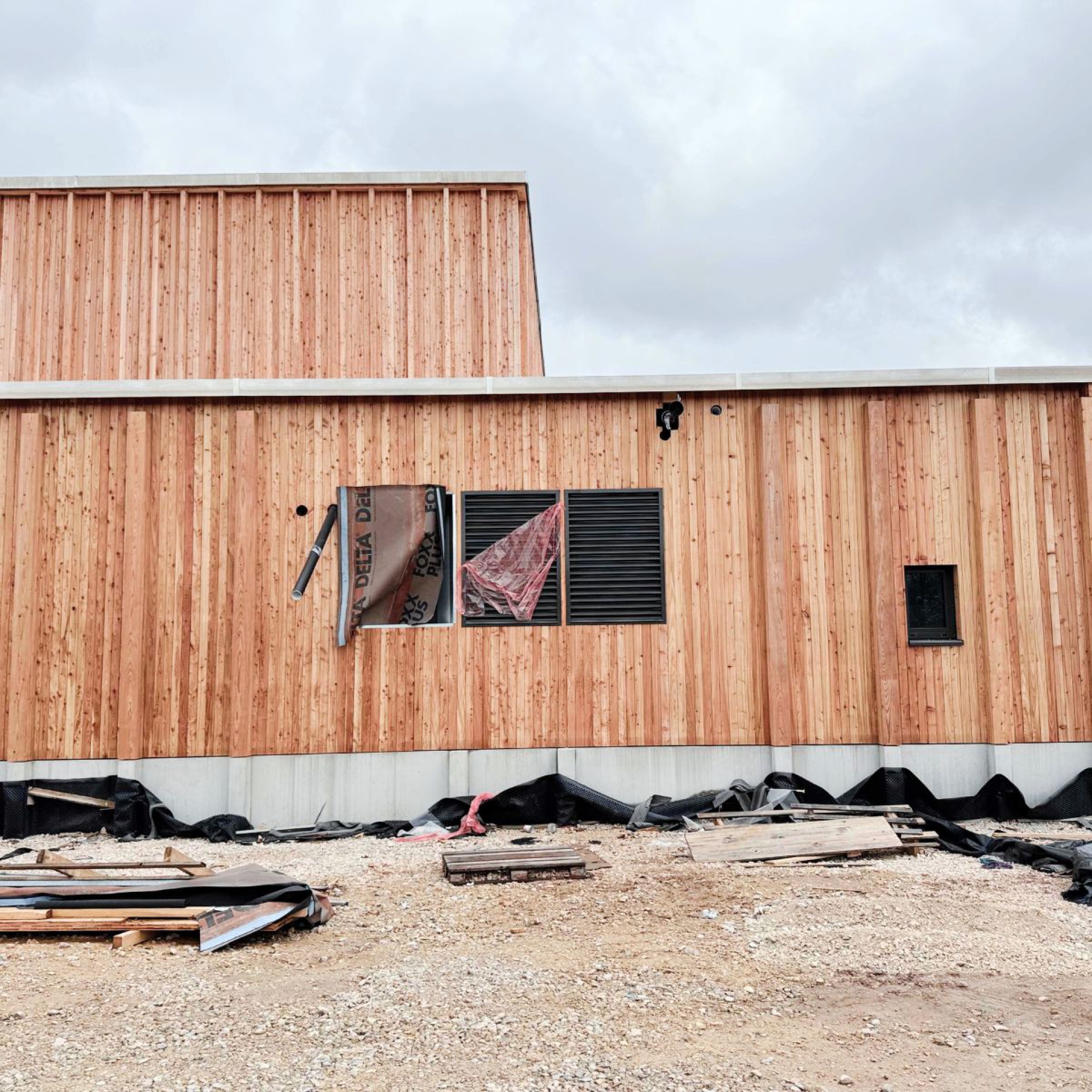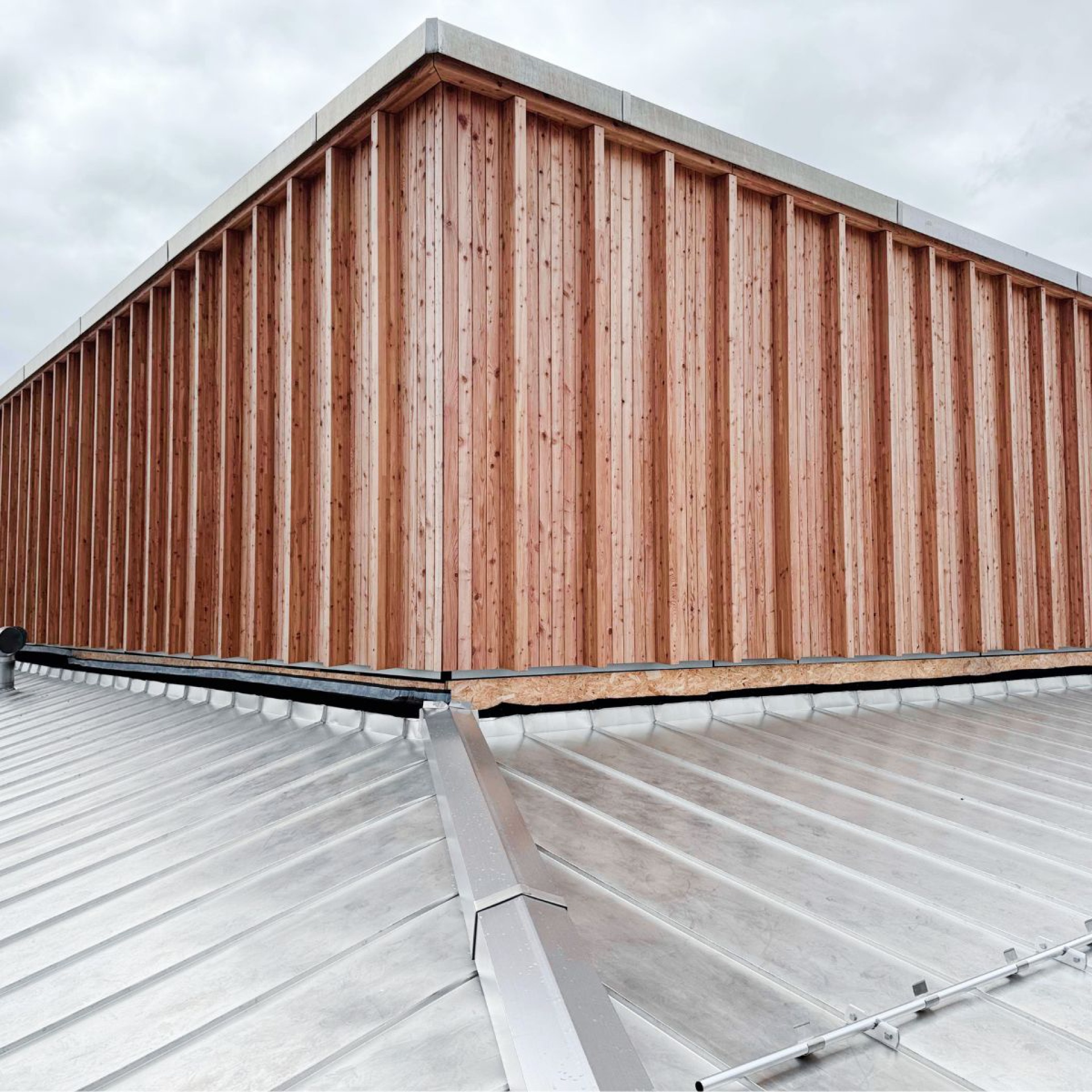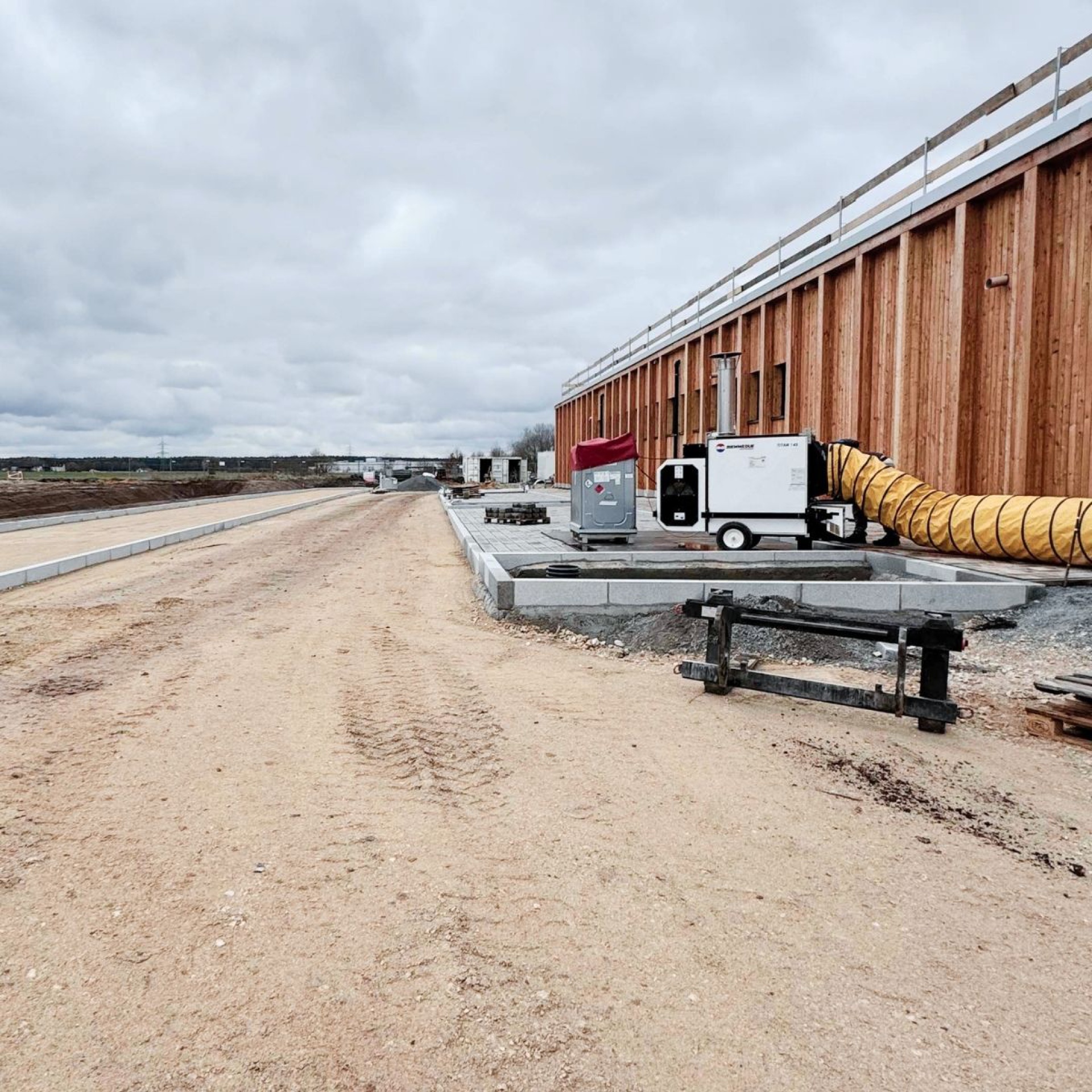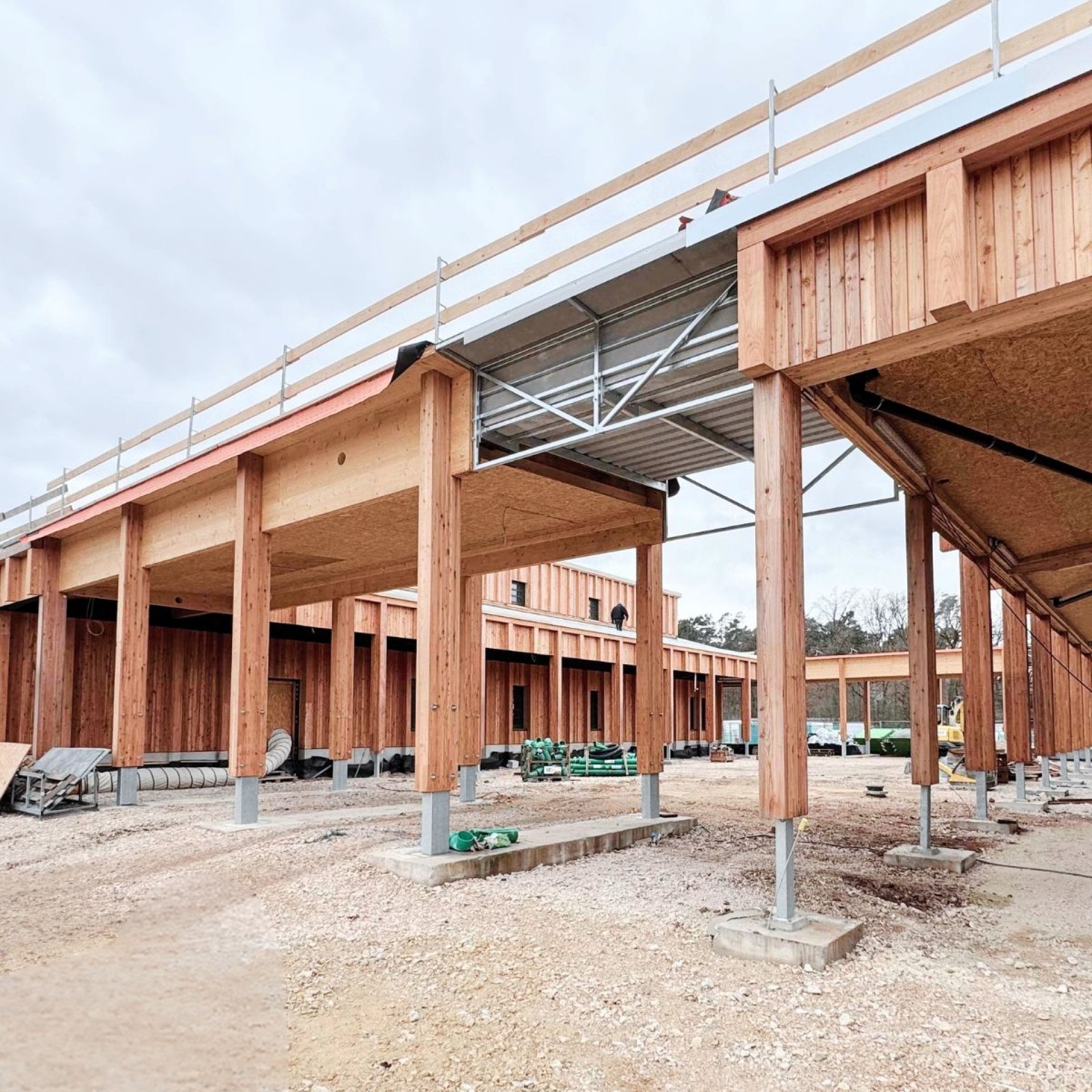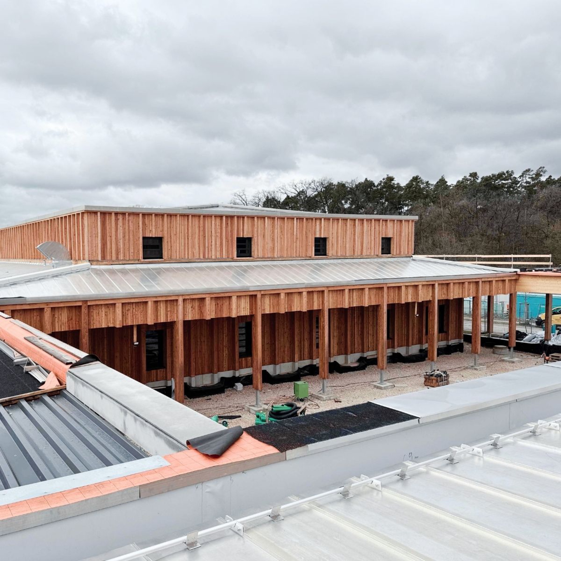 Projektstand März 2026. Der Neubau entsteht in Holzhybridbauweise und vereint Sport und Veranstaltungen unter einem Dach – mit zwei getrennt nutzbaren Bereichen. Die Fertigstellung ist für Sommer 2026 geplant.